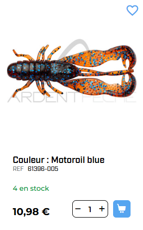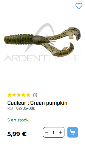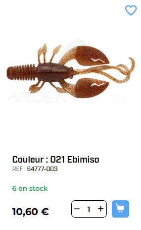 - Les créatures à flapper: ressemblant moins à une écrevisse, à la récupération, les pinces flappent et produisent de grosses vibrations. Idéales pour les pêches en Carolina ou en trailer derrière un jig.