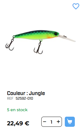 - La lame: de forme plus hydrodynamique que le lipless, elle est parfaite pour pêcher rapidement et les zones de courant. L’absence de billes est un plus certains jours.