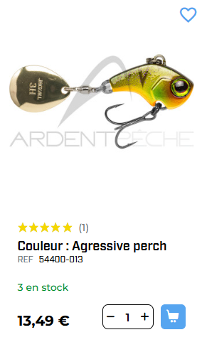 - Le spintail: bien que compact, ce leurre à palette déplace beaucoup d’eau. C’est idéal quand les poissons sont focalisés sur de petites proies, mais veulent des vibrations.