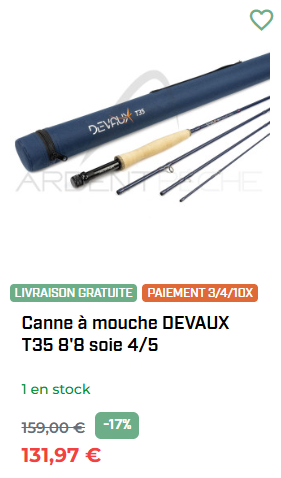 Devaux, qui a toujours su travailler des produits abordables pour une technicité poussée, propose la Devaux T35 à 159€. Cette canne est à nos yeux idéale pour découvrir la pêche à la mouche. Elle s’adapte aux soies de 4 et de 5, et offre une action équilibrée, laissant tout le soin au débutant de découvrir l’art du lancer. Par ailleurs, elle est permissive et gomme les erreurs classiques du débutant : poignet cassé, coude trop en avant ou trop en arrière, etc.