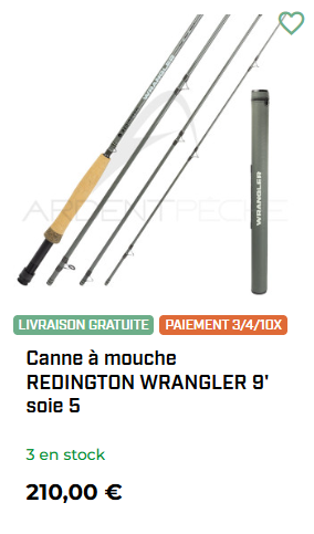 Enfin, la marque Redington propose la gamme la gamme Wrangler à 210€. Ces cannes, dotées d’une superbe cosmétique, sont très polyvalentes et permettent de découvrir bien des techniques : sèche, nymphe, streamer, etc.