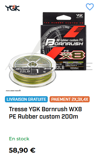 Une tresse fine en 8 brins fend mieux l’eau et reste discrète. Le bas de ligne en fluorocarbone, entre 20 et 35 °, dont la longueur sera à adapte à la clarté et aux obstacles.