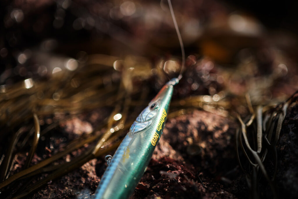 Les jerkbaits minnow sont les plus couramment utilisés. Ce sont des leurres relativement polyvalents, capables d’évoluer dans différentes couches d’eau selon leur densité et leur vitesse de récupération. Leur nage devient particulièrement efficace lorsqu’ils sont animés avec de petits coups de scion, appelés “twitchs”. Ces animations désordonnées imitent un poisson en fuite ou blessé, ce qui déclenche souvent des attaques violentes. Ils sont particulièrement adaptés aux zones peu profondes, aux plages, ou aux secteurs légèrement agités où le bar chasse en mouvement.
